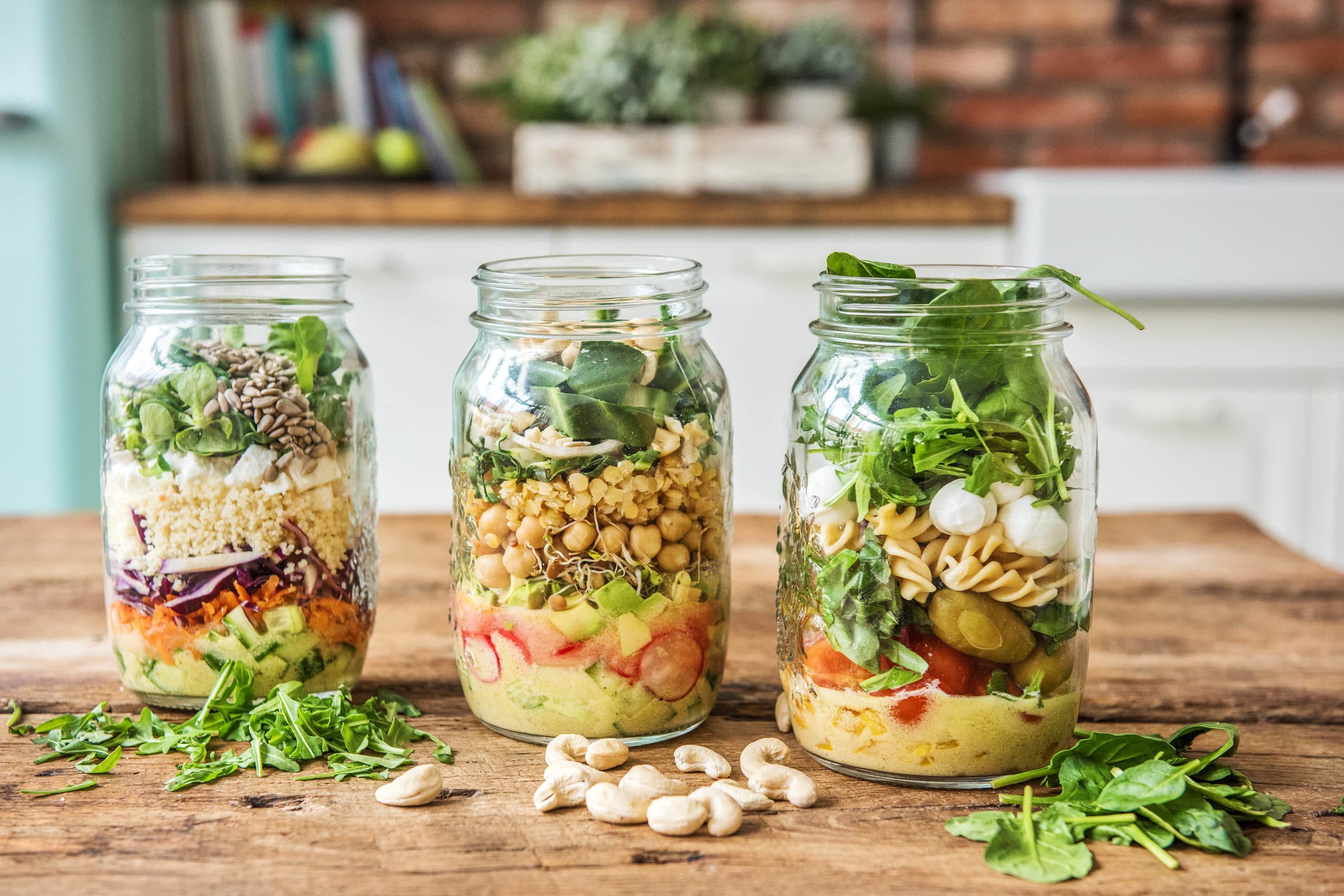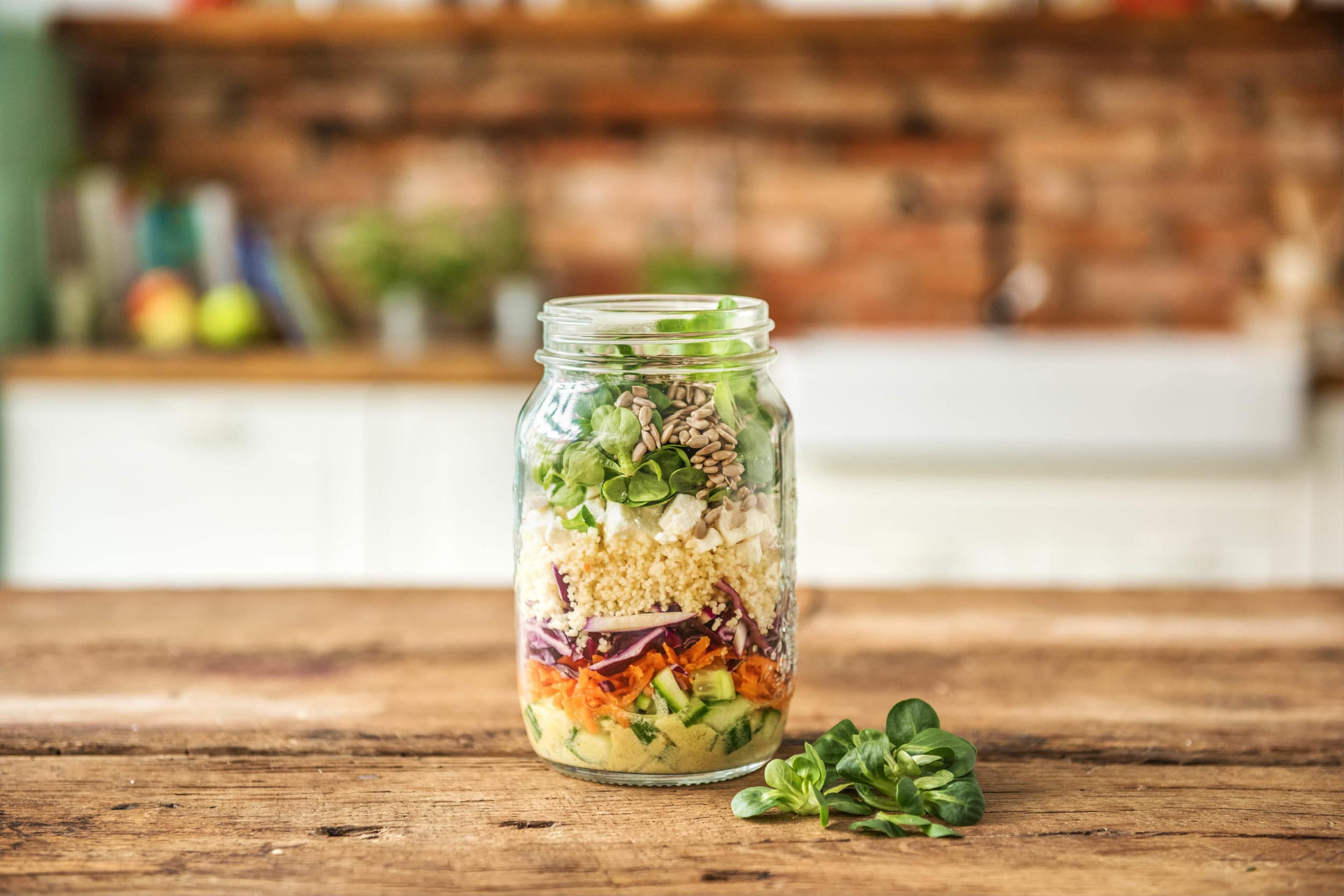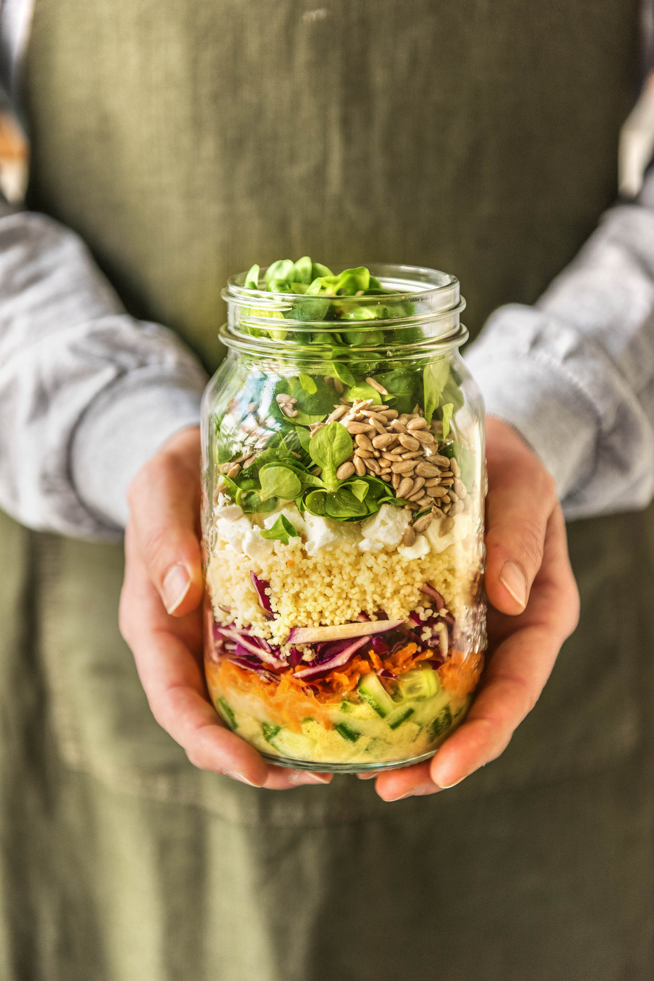 To help you save time in the kitchen and spend more precious minutes soaking up the sunshine, we layered our favourite salad ingredients into easily portable mason jars. Fill ’em up the night before and toss in your bag the next morning for a convenient and colourful, plant-based lunch. The dressing sits strategically at the bottom with delicate greens closer to the top so the layers don’t become soggy over time. When you’re ready to dig in, flip the jars upside down so the dressing spreads evenly throughout, then unscrew the cap and empty into a bowl (or if you want to eat directly out of the jar, that works too).